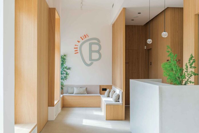 El proyecto de Bauma Studio parte de la necesidad de unificar dos clínicas dentales (que las clientas tenían en funcionamiento) en una sola clínica en un local de 210 m2 en lo que fue una antigua pizzería de Vilassar de Mar, Barcelona.