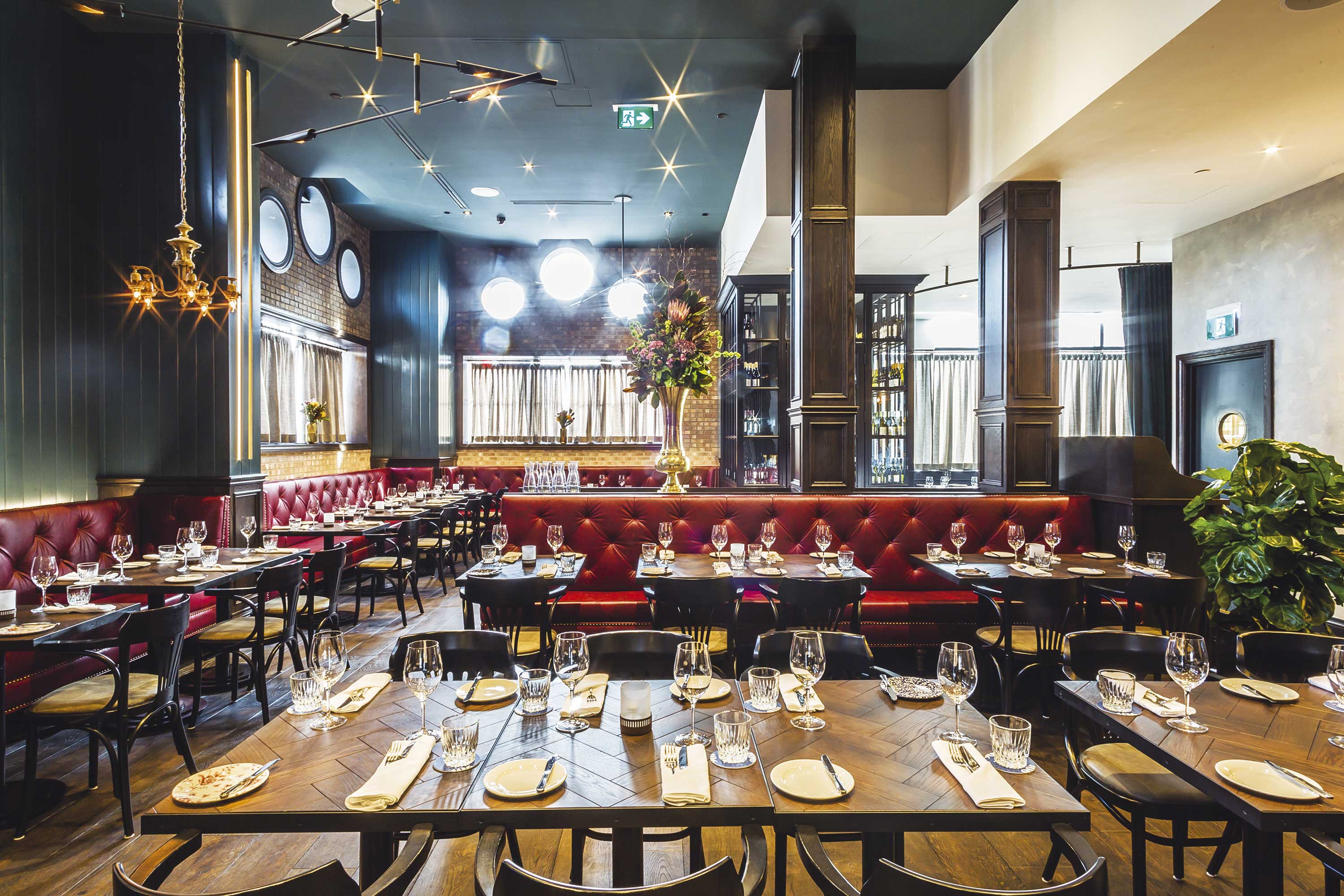 Las áreas comunes incluyen el vestíbulo de la planta baja con una cafetería y un bar luminosos, concebido como un centro social para los huéspedes, así como la comunidad circundante. Como un contrapunto a los otros espacios interiores, el restaurante The Civic tiene un ambiente más cálido y melancólico. Una paleta de colores y materiales profundos, incluidos cueros verdes y granate, y una barra de nogal con acentos de bronce antiguos infunden el espacio con el carácter de una taberna envejecida, también equilibrada por giros extravagantes, sillas y cortinas florales de estilo vintage estampadas con humeantes tubos de hookah.