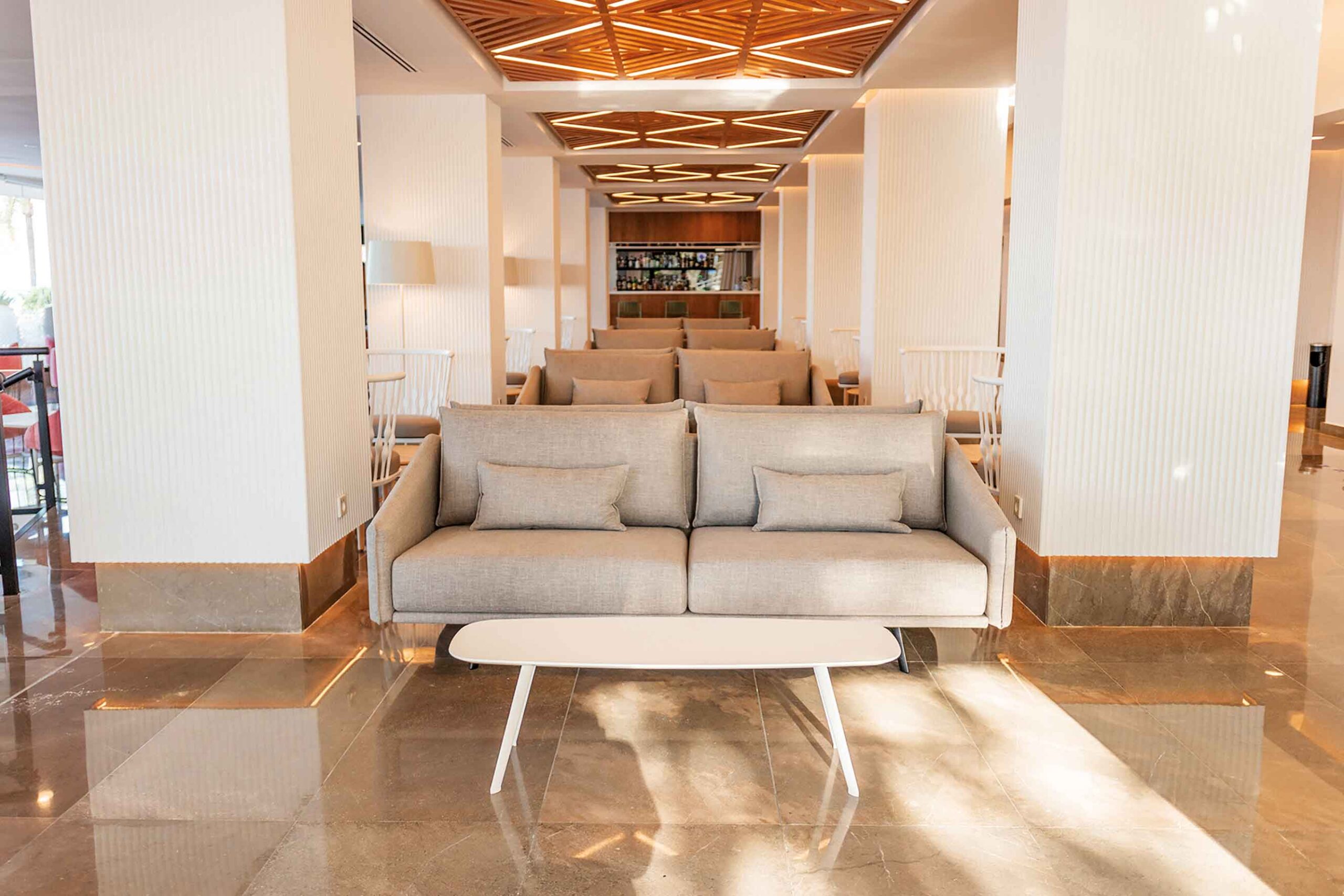 Cimbel El hotel Cimbel está situado en primera línea de la playa de Levante en Benidorm. En él se respira un concepto de diseño fresco y relajado, se respira verano. Materiales nobles y atemporales como el mármol y la madera hacen de este diseño una apuesta segura y de valor. Fotografías: @blackwood.creative / Aaron Freh.