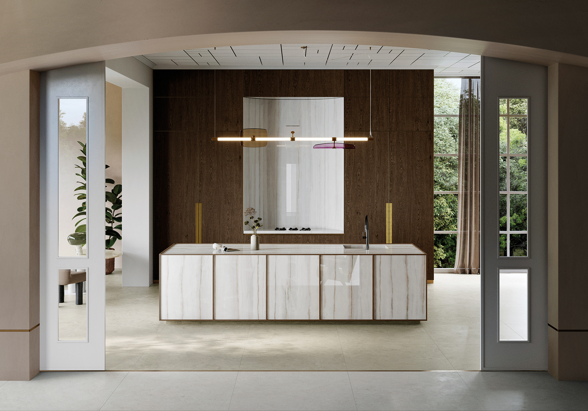 Este mármol clásico se reinventa en una nueva versión que muestra, de la forma más fiel, sus vetas. El diseño distinguido y vibrante de Calacatta Viola aporta carácter, siendo una de las mejores colecciones de porcelánico de gran formato. Al mismo tiempo, la extensión de las vetas y su estilo neoclásico visten de manera uniforme los ambientes.