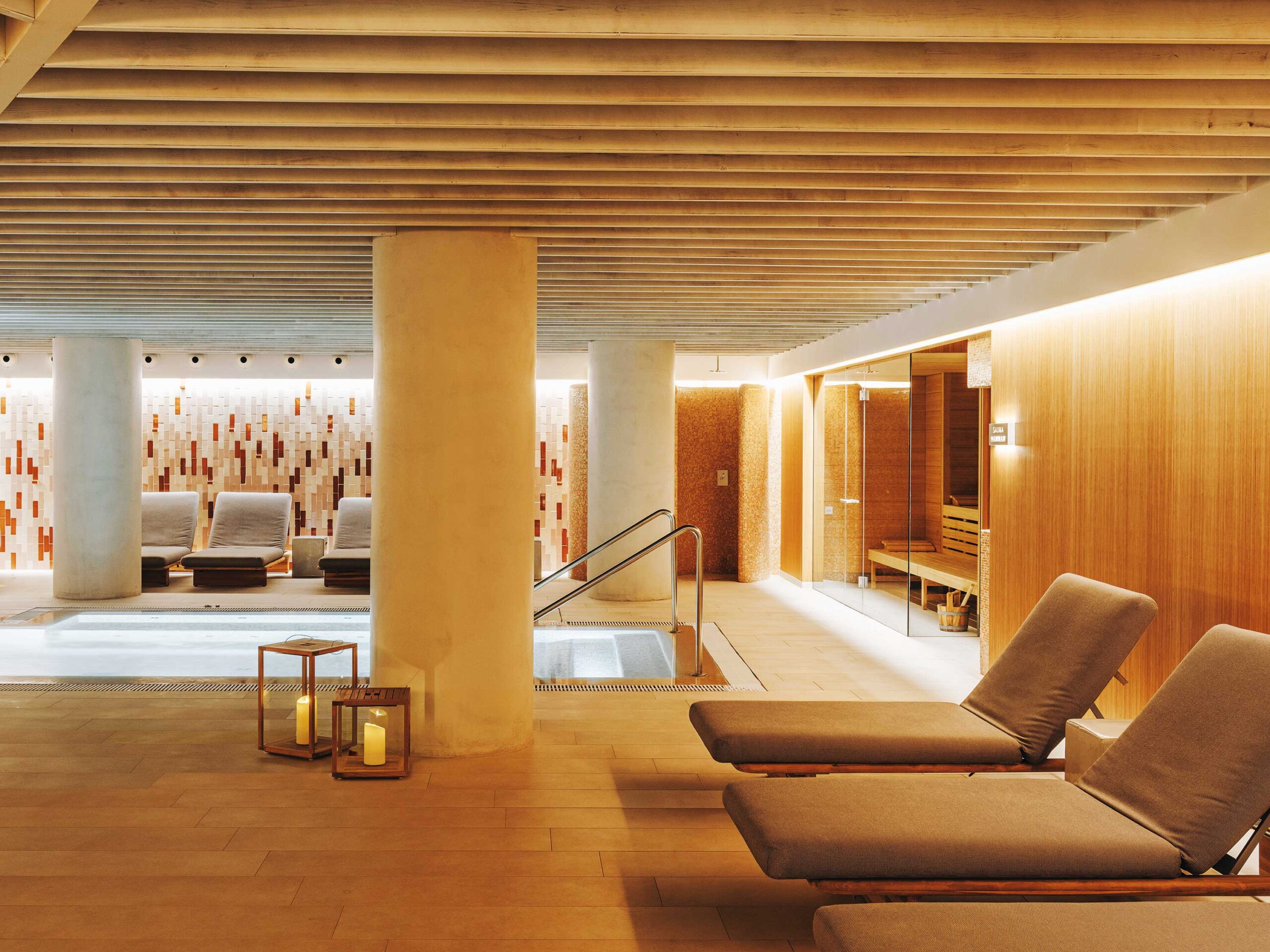 Cuando la relación con el exterior es importante en algún proyecto, buscamos soluciones que lo pongan en valor. Utilizamos el mismo material en ambos lugares, por ejemplo, para hacer desaparecer los límites. O cuidamos la iluminación artificial, a fin de conseguir un único espacio.