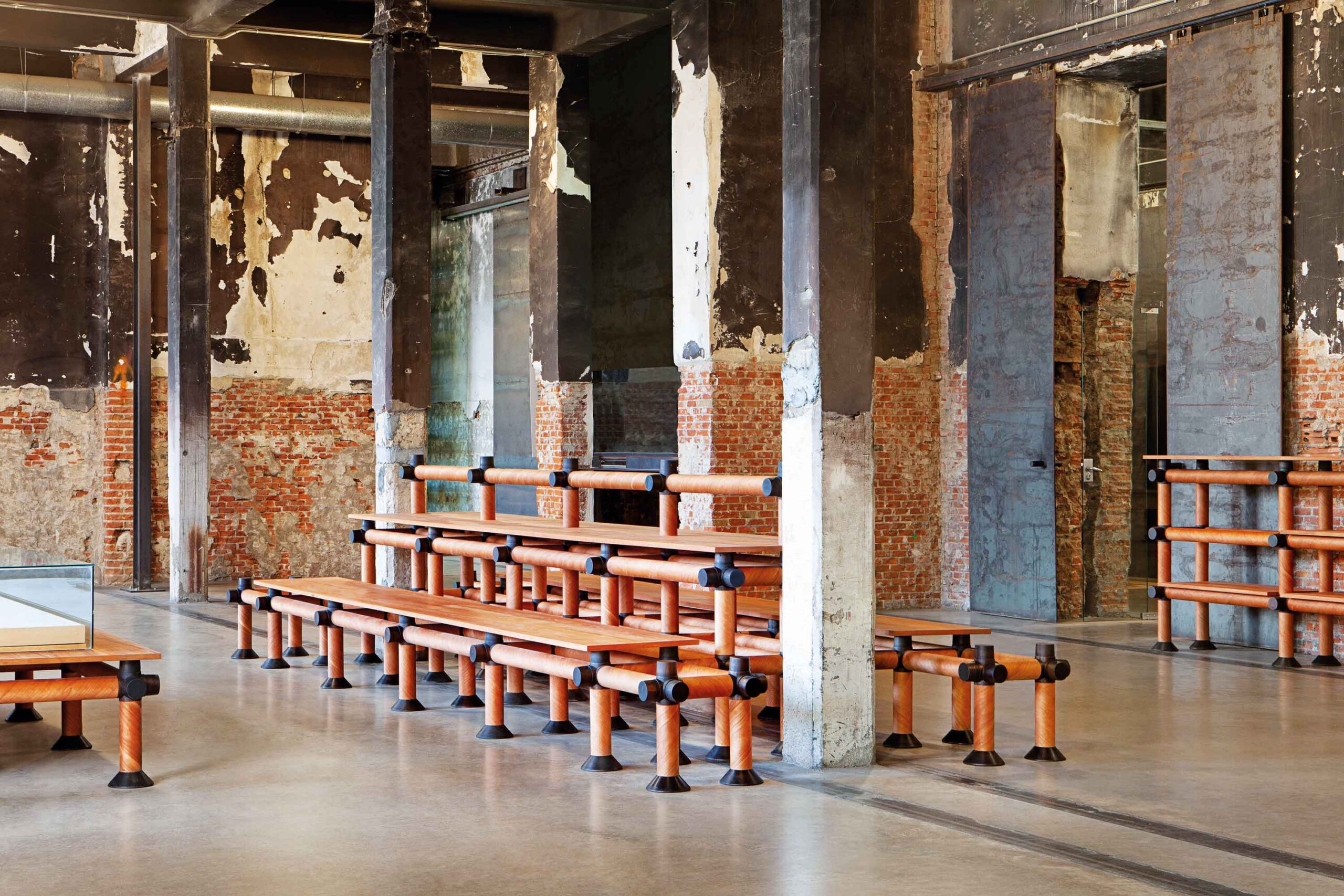 Berluti: Durante el Salone del Mobile 2021, Jorge Penadés presentó en la tienda insignia de Berluti en Milán una colección de edición limitada compuesta por escritorio, perchero y lámpara. La serie, basada en el material Structural Skin, combinaba seda, vidrio y aluminio con piezas únicas numeradas. Fotografías: Max Creasy.