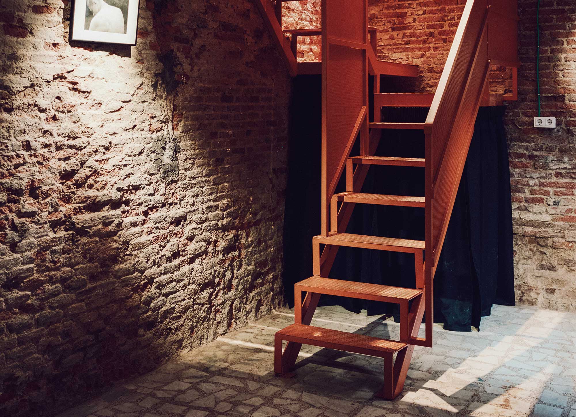 Como en una cámara oscura que distorsiona la imagen al proyectarse en su interior, el acceso al local se realiza a través de una lente cóncava; un orificio de entrada en el espacio, creado por un gran espejo curvo que distorsiona el reflejo y ofrece una experiencia visual única. Ya en el interior, se presenta un espacio vestido por una piel perimetral de textil que proyecta algunas de las imágenes más icónicas reveladas por Carmencita Film Lab.