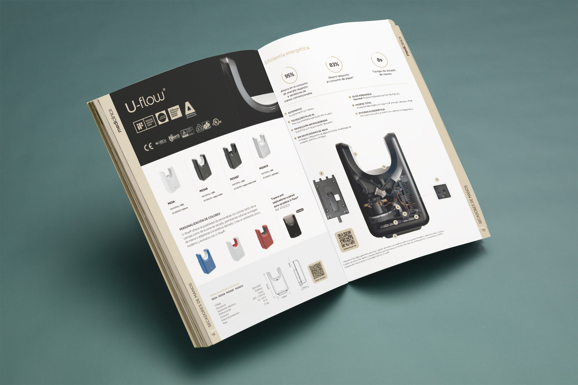 Amplia información referente al único secador del mundo galardonado con tres de los prestigiosos premios del diseño a nivel mundial, U-flow, con nuevas soluciones en elementos touchless en la línea All in One o BtM. Soluciones con recubrimiento PVD para disponer de ambientes elegantes y diferenciales, todo ello sin descuidar la amplia gama de soluciones para equipar el espacio del baño.