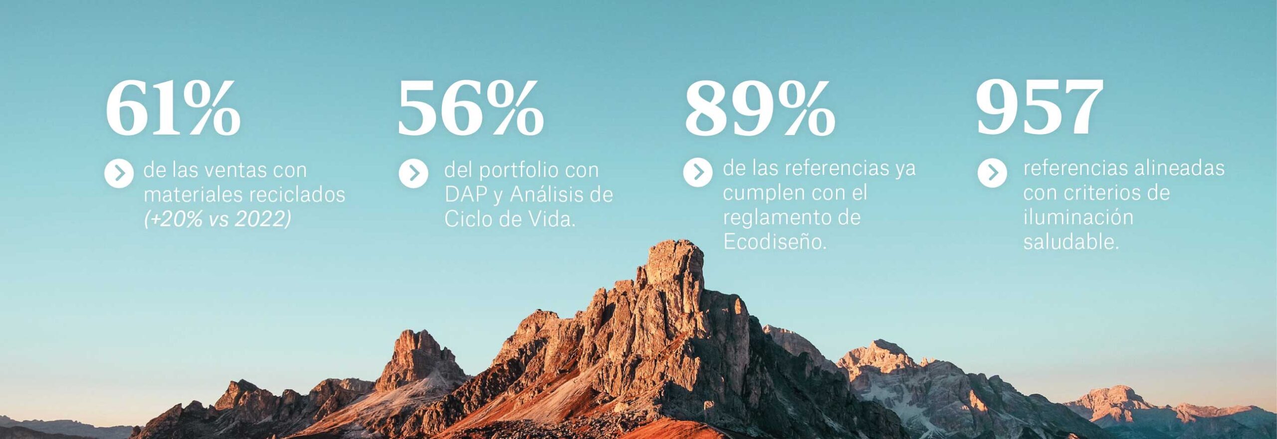 El informe destaca los avances en sus líneas estratégicas de sostenibilidad, centradas en el uso eficiente de recursos, la circularidad y el bienestar lumínico. En 2024, Lamp logró un índice global de reducción de residuos no segregables de 0,69, mejorando los resultados del año anterior. Además, el 61% de sus ventas correspondió a productos fabricados con materiales reciclados, un 20% más que en 2022.