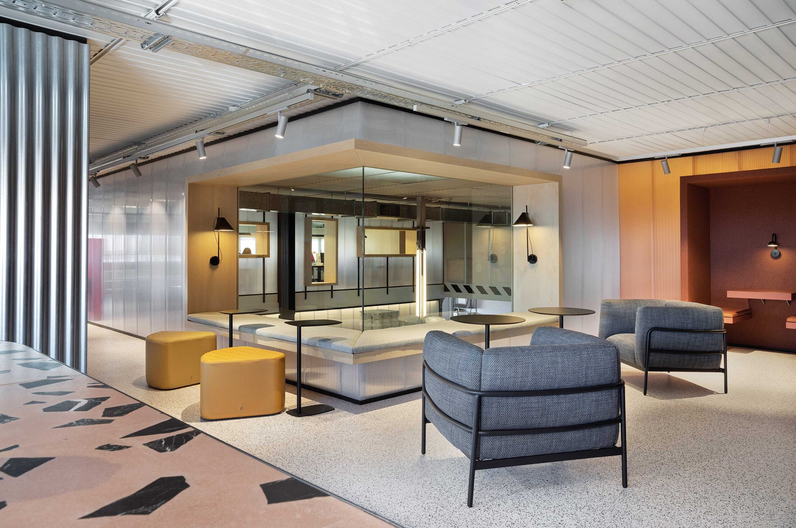 Cremyco: El diseño industrial y los guiños al chocolate reflejan la esencia de Cremyco. Espacios diáfanos y materiales evocan el carácter de la fábrica, creando un ambiente funcional y coherente. Fotografías: Elton Rocha.