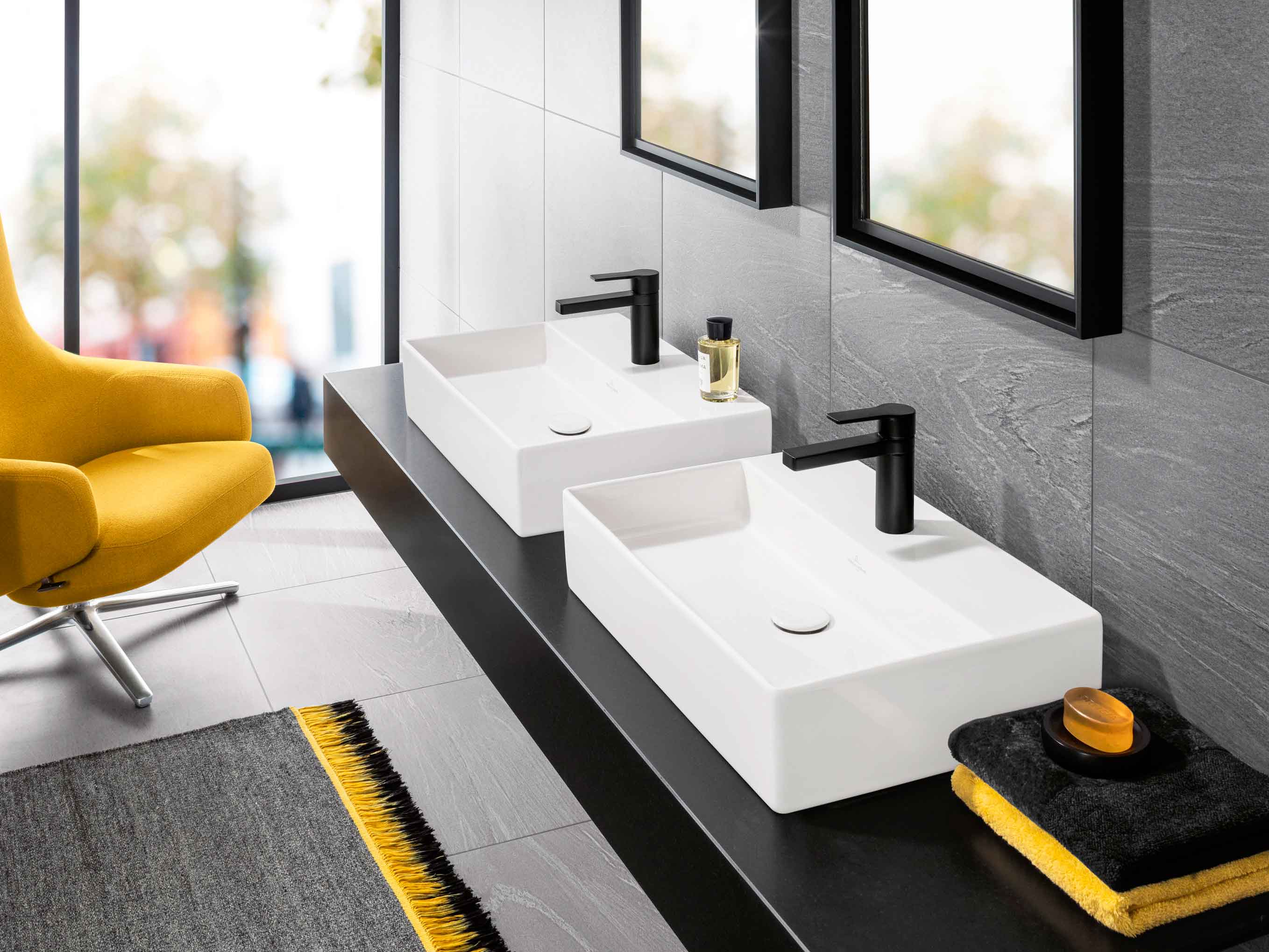 La colección Memento de Villeroy & Boch, con un diseño lineal, intemporal y minimalista ha sido ampliada con nuevos acabados que conservan la tradicional forma de Memento: Memento 2.0 fabricada con el innovador material de la firma TitanCeram, y Memento Concrete, una nueva superficie de moda con aspecto de hormigón, que subraya el carácter urbano de la colección. Los dos nuevos lavabos sobre encimera de Memento 2.0, son los primeros que se han fabricado con la novedosa cerámica TitanCeram, innovador material que se caracteriza por una gran estabilidad dimensional y resistencia, permitiendo fabricar lavabos con paredes mucho más delgadas que para cerámicas sanitarias clásicas. El nuevo color Concrete de apariencia de acabado de hormigón de alta calidad acentúa el carácter urbano de la colección y está en línea con la tendencia actual del diseño interior,  donde el hormigón se combina con colores cálidos y materiales, revelando un ambiente original y acogedor, incluso hogareño.