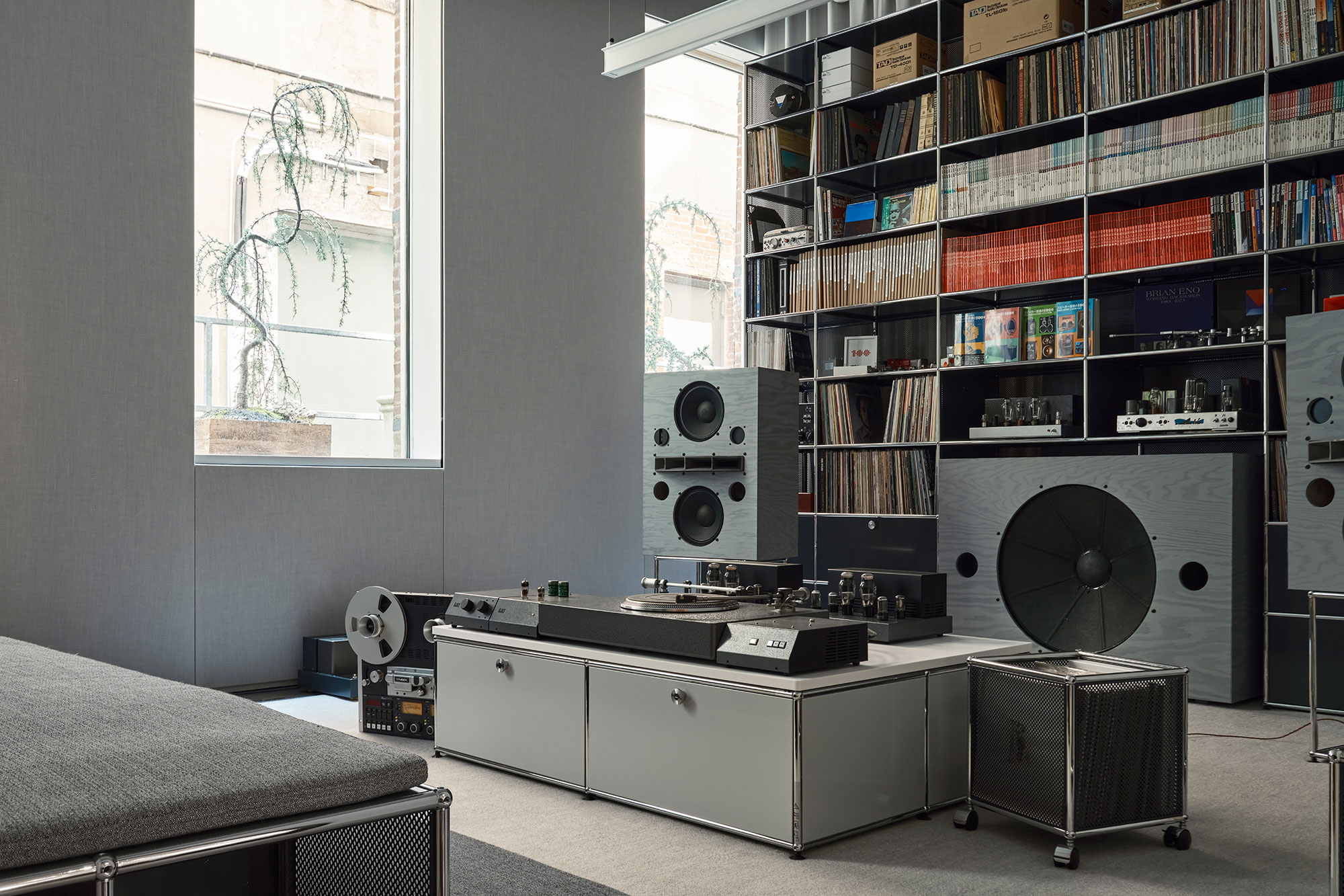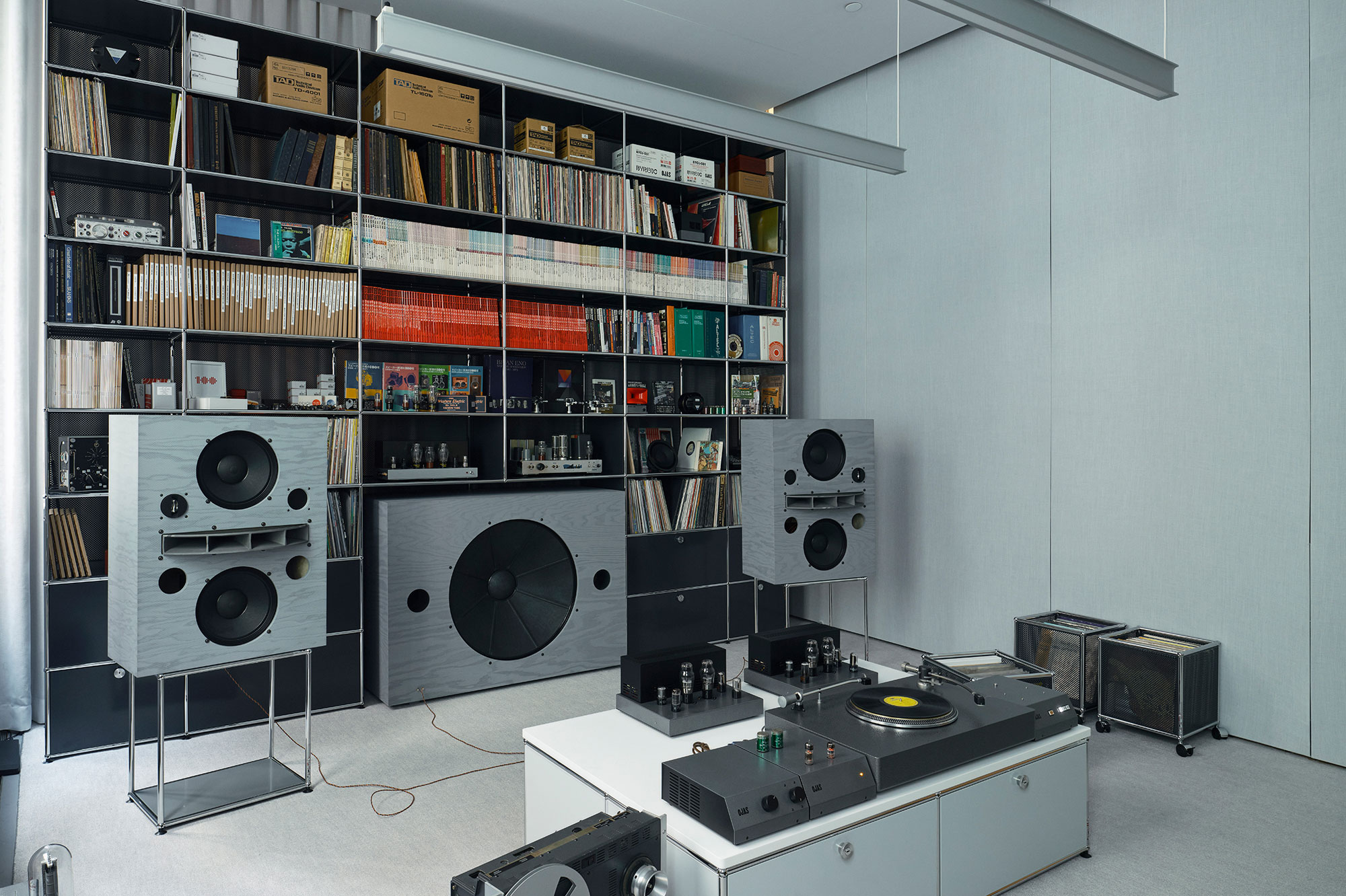 “Trato de crear un ambiente que se sienta como un templo o un santuario” expresa Devon Turnbull, quien combinando de manera excepcional el sistema modular USM con discos, vinilos, libros y sistemas de audio, crea una “Listening room” que ofrece una experiencia sonora y estética única.