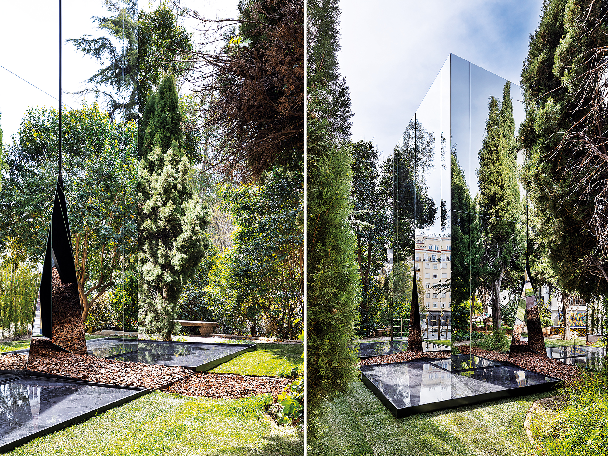 A Reflection of Who We Are. Un maravilloso espacio al aire libre es el escogido por Neolith para dar la bienvenida a los visitantes de Casa Decor 2024. El sorprendente diseño de Summumstudio, para Neolith, denominado “A Reflection of Who We Are”, rinde homenaje a la naturaleza en los majestuosos jardines del Palacio de la Trinidad. El estudio ha diseñado una potente instalación en la que, a través de una piel espejada, se capta la belleza del entorno natural para proyectarla al interior, generando un espacio inmersivo donde el producto se mimetiza con la naturaleza. Fotografías: Nacho Uribesalazar.