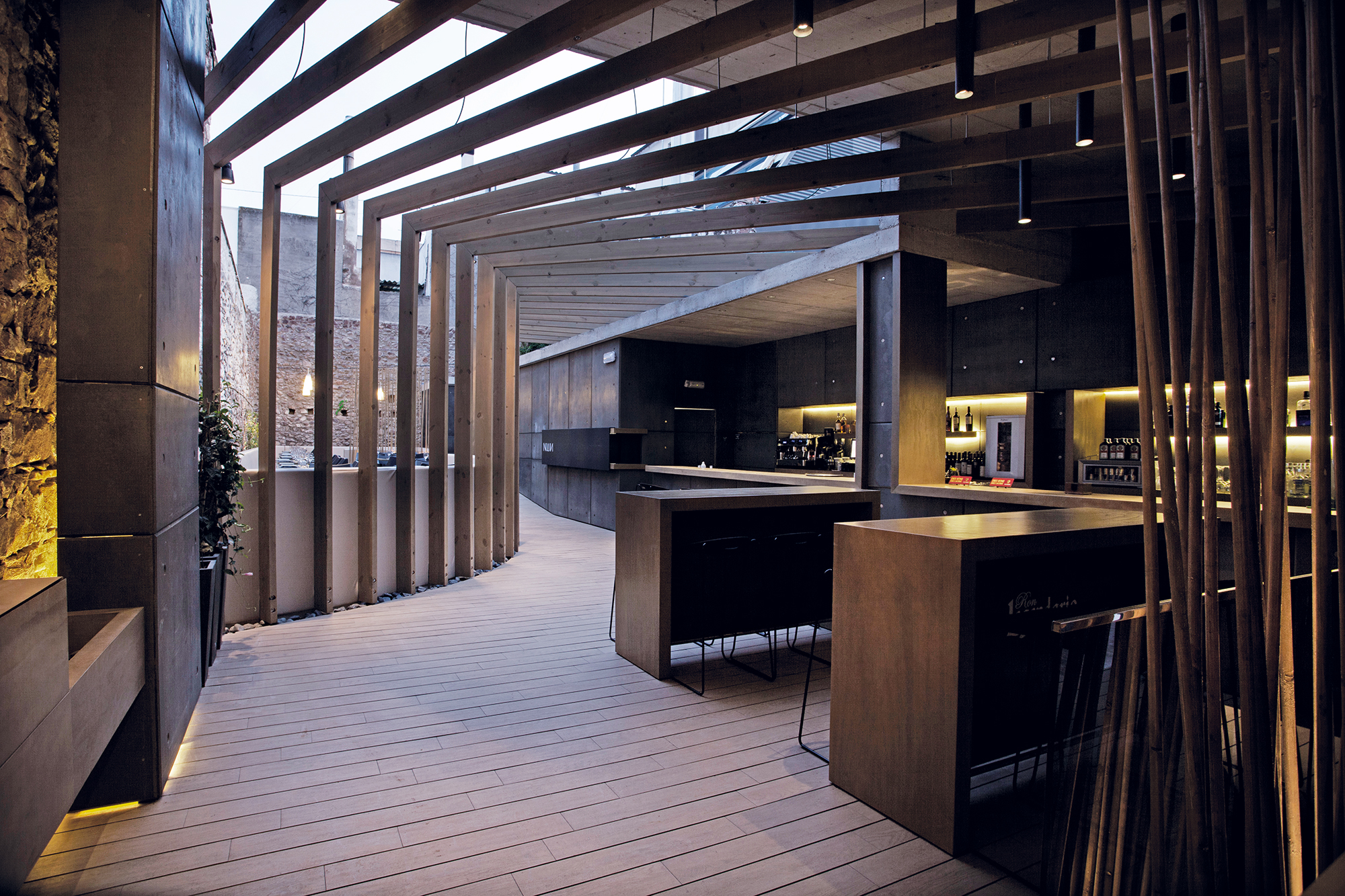 Nuun es un proyecto de restauración que se ubica en un antiguo patio mediterráneo que está conformados entre medianeras de mampostería y cosido con piedra de rodeno, la piedra autóctona de la zona. El espacio gira en torno a este elemento estructural de origen que había que respetar. Fotografías: José María Gimeno / Summumstudio.