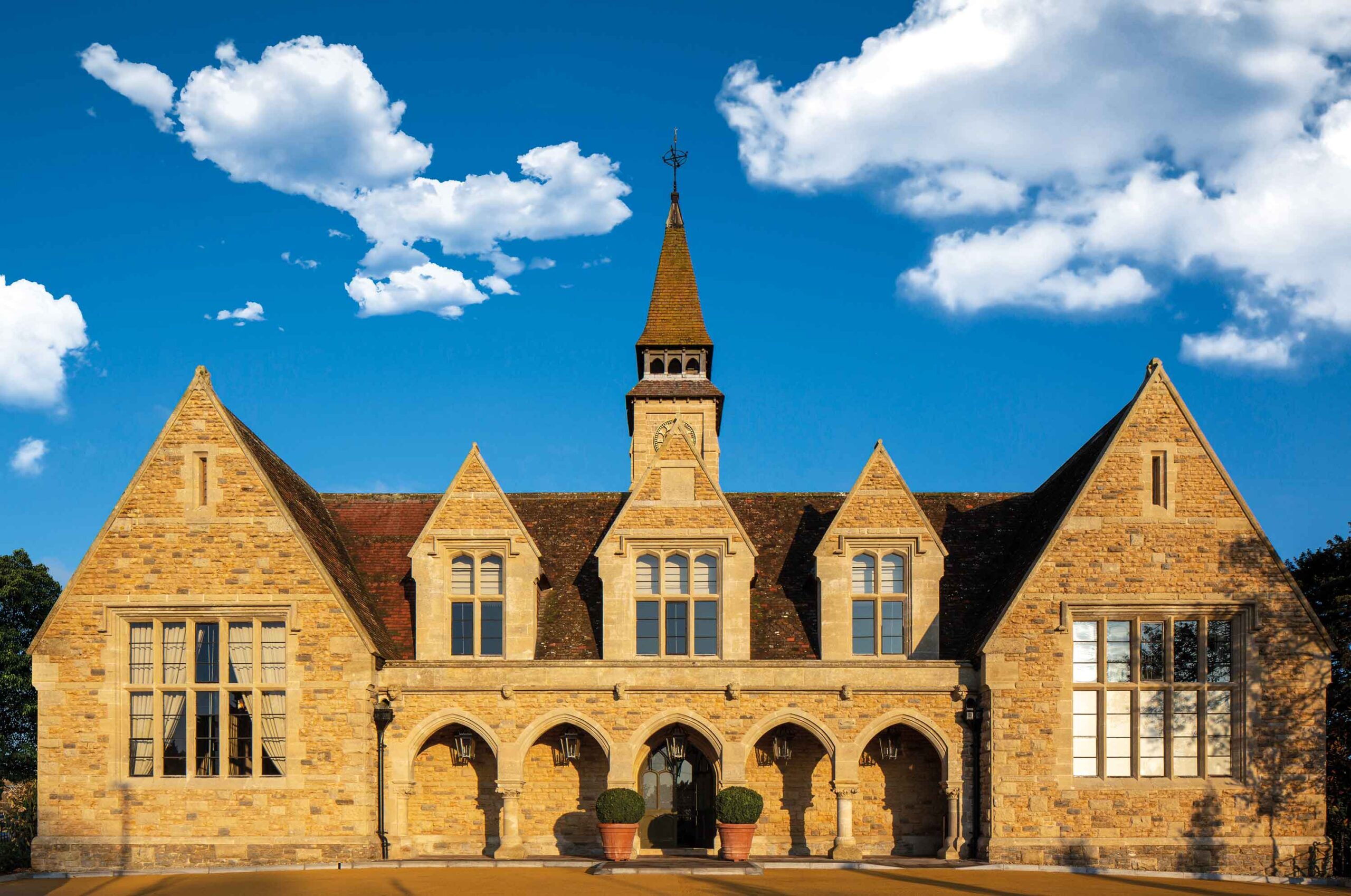El edificio original catalogado de grado II se construyó en la década de 1860 en un estilo gótico Tudor como la escuela del pueblo, pero se cerró en la década de 1980 y se convirtió en oficinas. Finalmente, quedó vacío y en descomposición. Para Studio Indigo, el objetivo era restaurar el edificio impresionante, creando un nuevo restaurante y bar contemporáneo dentro de los límites de un hito histórico, uno imbuido de recuerdos e historias de la comunidad local.