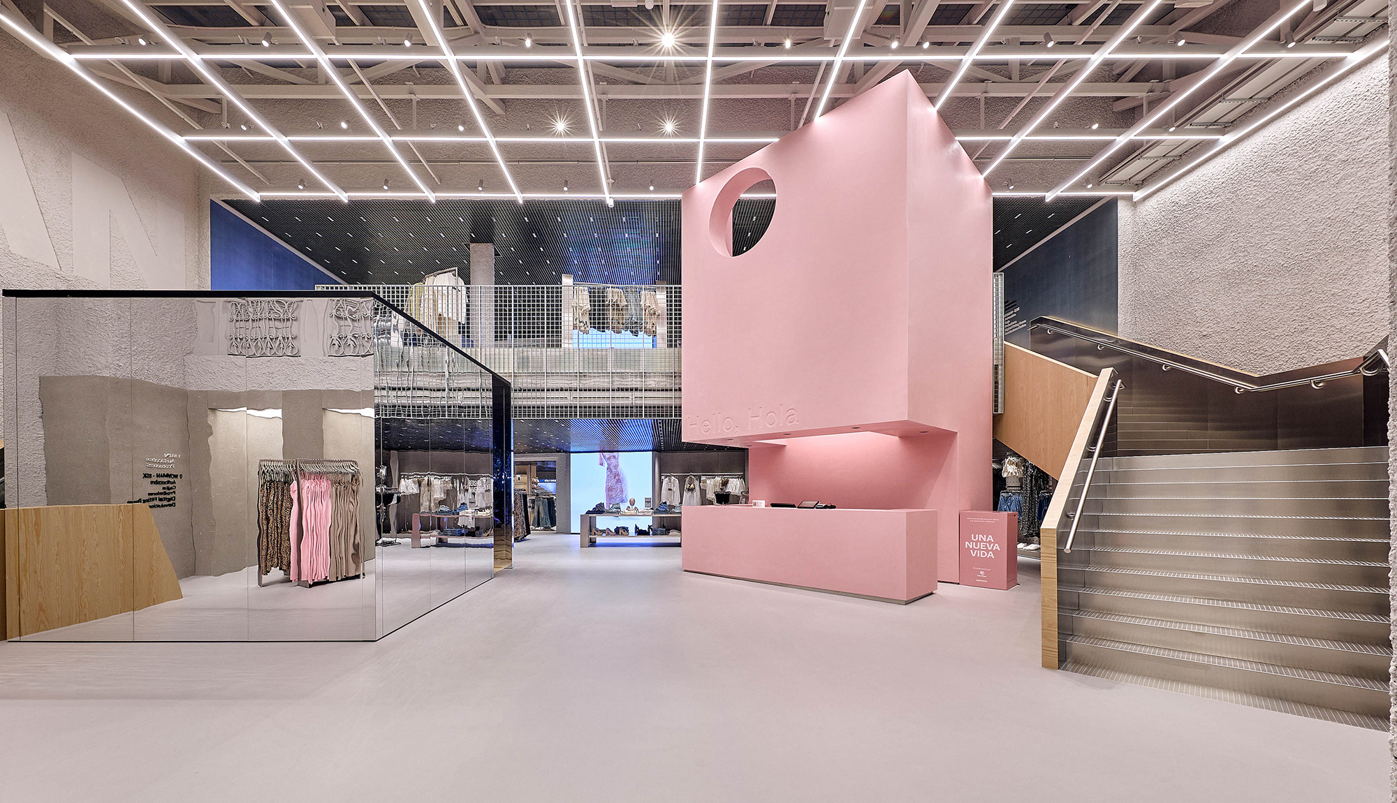 BERSHKA emprende un nuevo rumbo en la imagen de sus tiendas, cambiando su estética y mejorando la experiencia de compra. PORCELANOSA Grupo colabora con BERSHKA (Grupo INDITEX) en varios espacios y mobiliario de las nuevas aperturas de la marca.